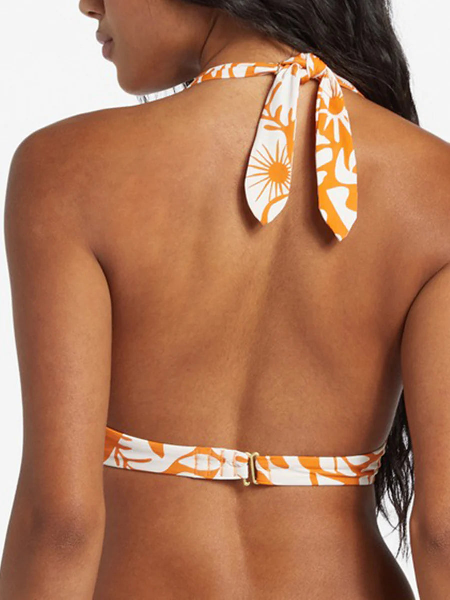 Elevate your beach look with Billabong's On Island Time Reese U-Halter Bikini Top. Crafted from our recycled Peach Stretch fabric, this bikini top screams summer vibes. The halter neck is complemented by darts at the bust to flatter your shape.