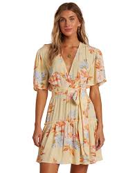 With a sunny floral print and feminine design, the Billabong One And Only Dress has its heart set on summer days ahead. A women’s mini dress printed with large-scale blooms takes on a flirty cut with a V neckline and ruffled tier at the skirt. The short sleeve mini dress is finished with a removable self tie belt at the waist.