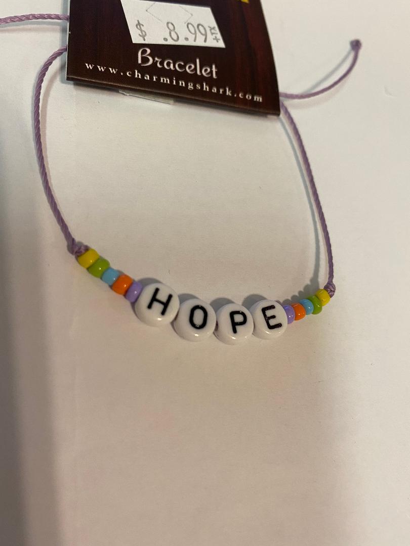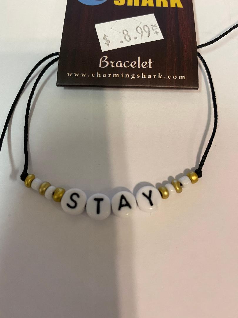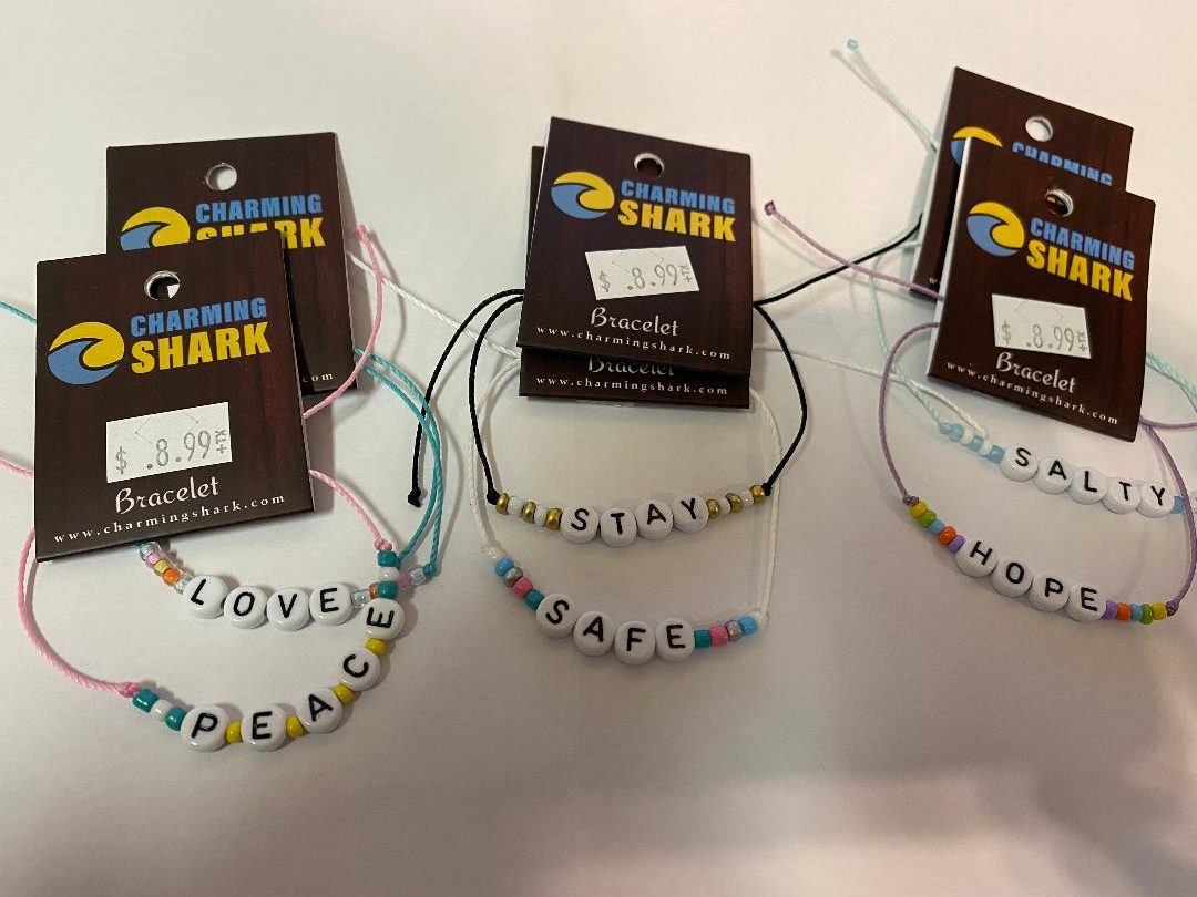 These alphabet bracelets come in salty, safe, hope, love, peace and stay.