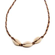 Braided Cowrie Choker available in pink, brown, green and blue.