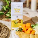 Aged cheddar blended with aromatic thyme creates the perfect savoury shortbread. Delectably delicious and bite sized, they are perfect alongside a glass of wine or shared on a charcuterie board with fresh fruit and your favourite Provisions jam.