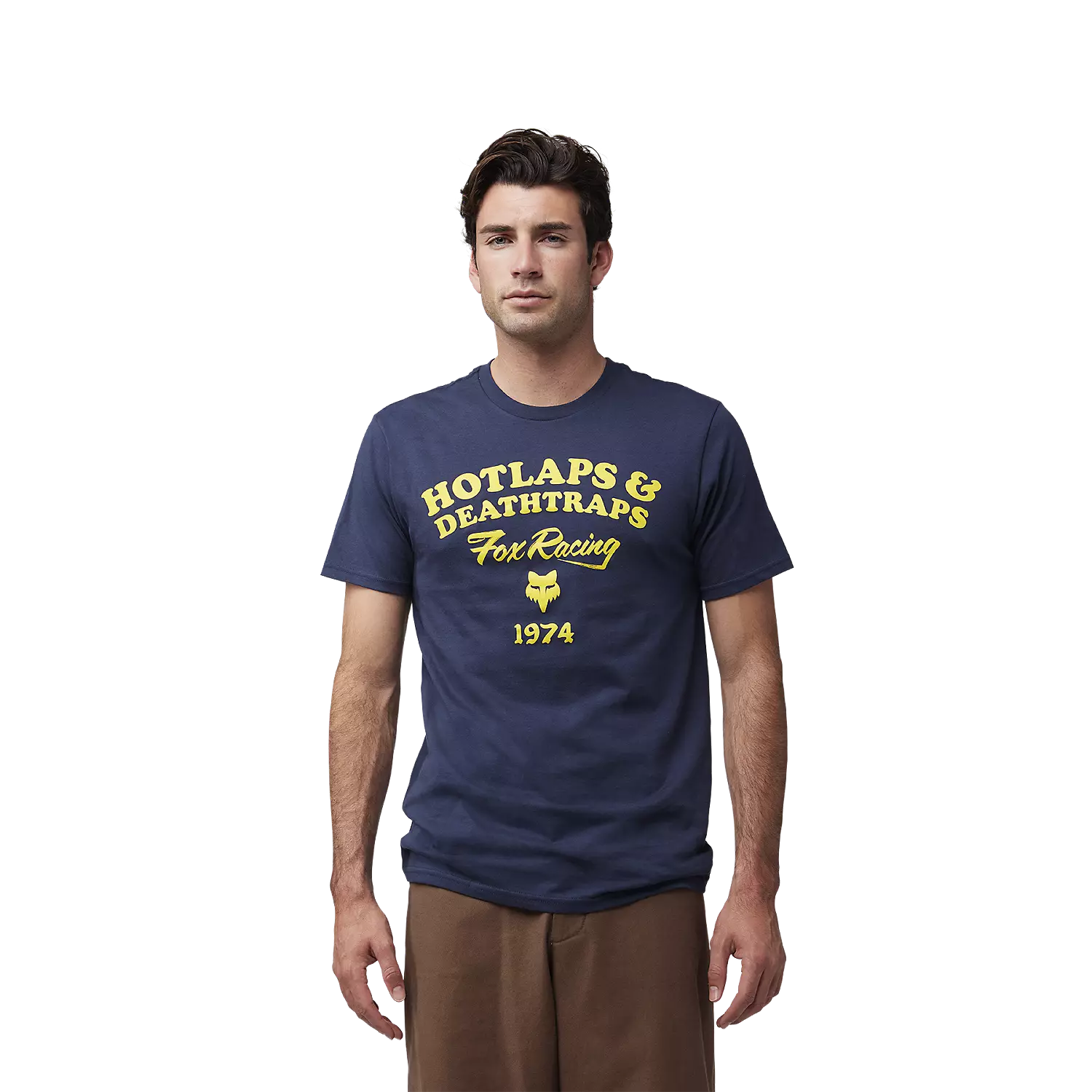 Hotlaps and Deathtraps. Nuff said. The Hotlaps Premium Tee is a whole lot of attitude wrapped in an instant classic graphic. This T-shirt is lightweight and soft and features side-seam construction to help keep its shape no matter how many times you wash it. Made from premium fine-knit jersey material, its refined look combines classic Fox style with supreme comfort and is sure to become an instant fav in your T-shirt collection.