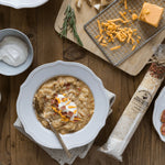 What says comfort food like a fully loaded baked potato? We captured the creamy, carb-y comfort in a soup. Thick and savoury, our potato soup is loaded with garlic, onion and herbs. Garnish with baked potato must-haves: Sour cream and chives—and, if you’re anything like us, crispy, chopped bacon.