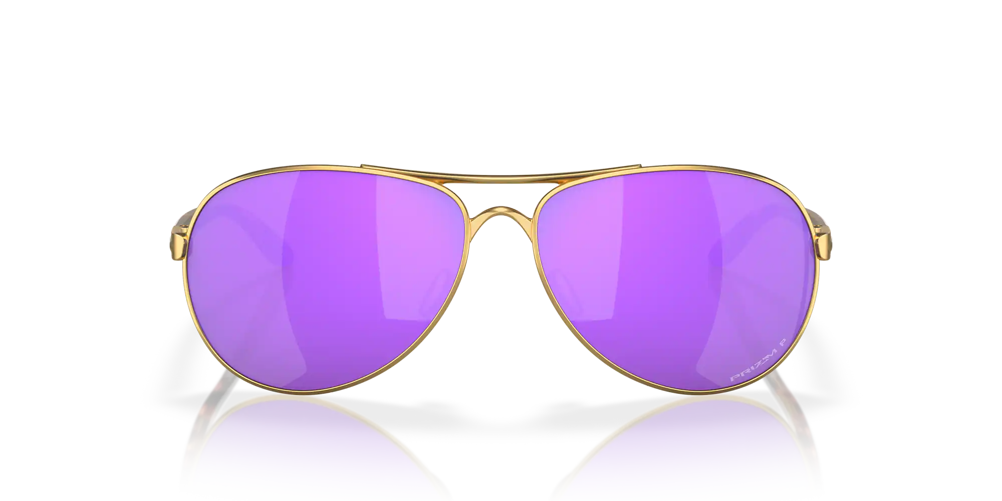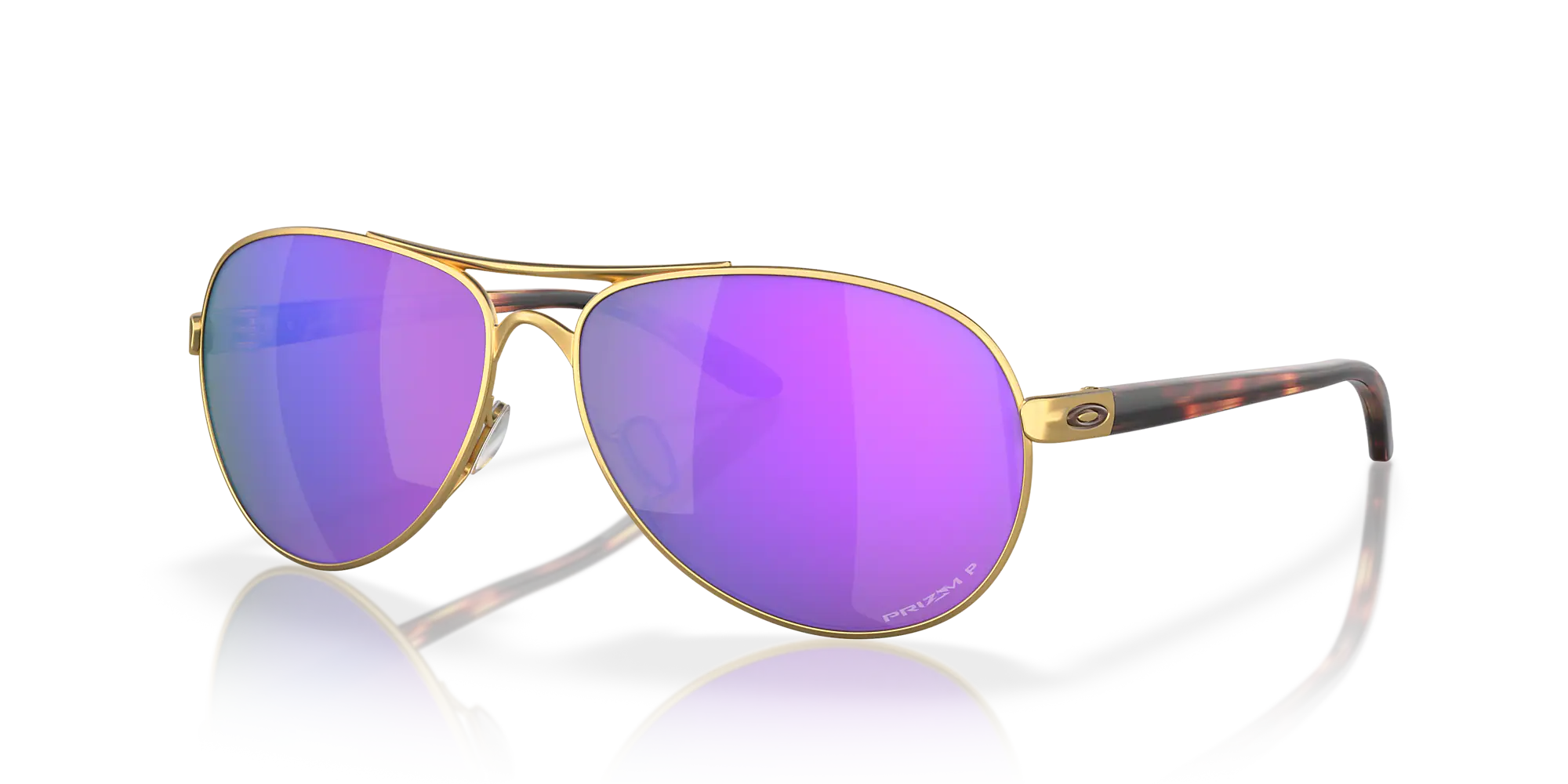 Oakley Feedback is a new definition of style and performance crafted with a pilot shape frame, c-5 material, and polarized lens treatment. The sleek matte gold frame paired with the elegant satin gold frame and prizm violet polarized lenses delivers optimal light transmission for rich color contrast while filtering out harmful rays. Elevate your look with this fusion of fashion-forward design and cutting-edge technology that seamlessly integrates aesthetics, functionality, and timeless style. Available with lens contrast enhancement technology..