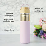 - Materials: Single-walled borosilicate glass, stainless steel, silicone, and bamboo