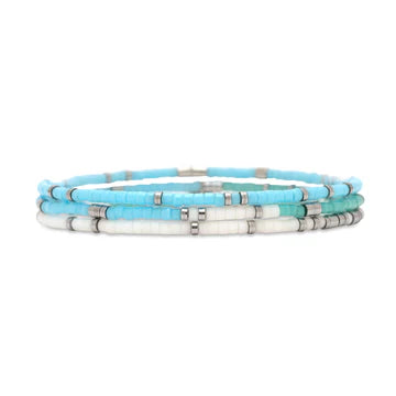 Pura Vida Mixed Seed Bead Stretch Bracelet Set of 3 available in colours Monochrome (Black,White and Gold) or Seafoam Dream (Turquoise, White and Silver).