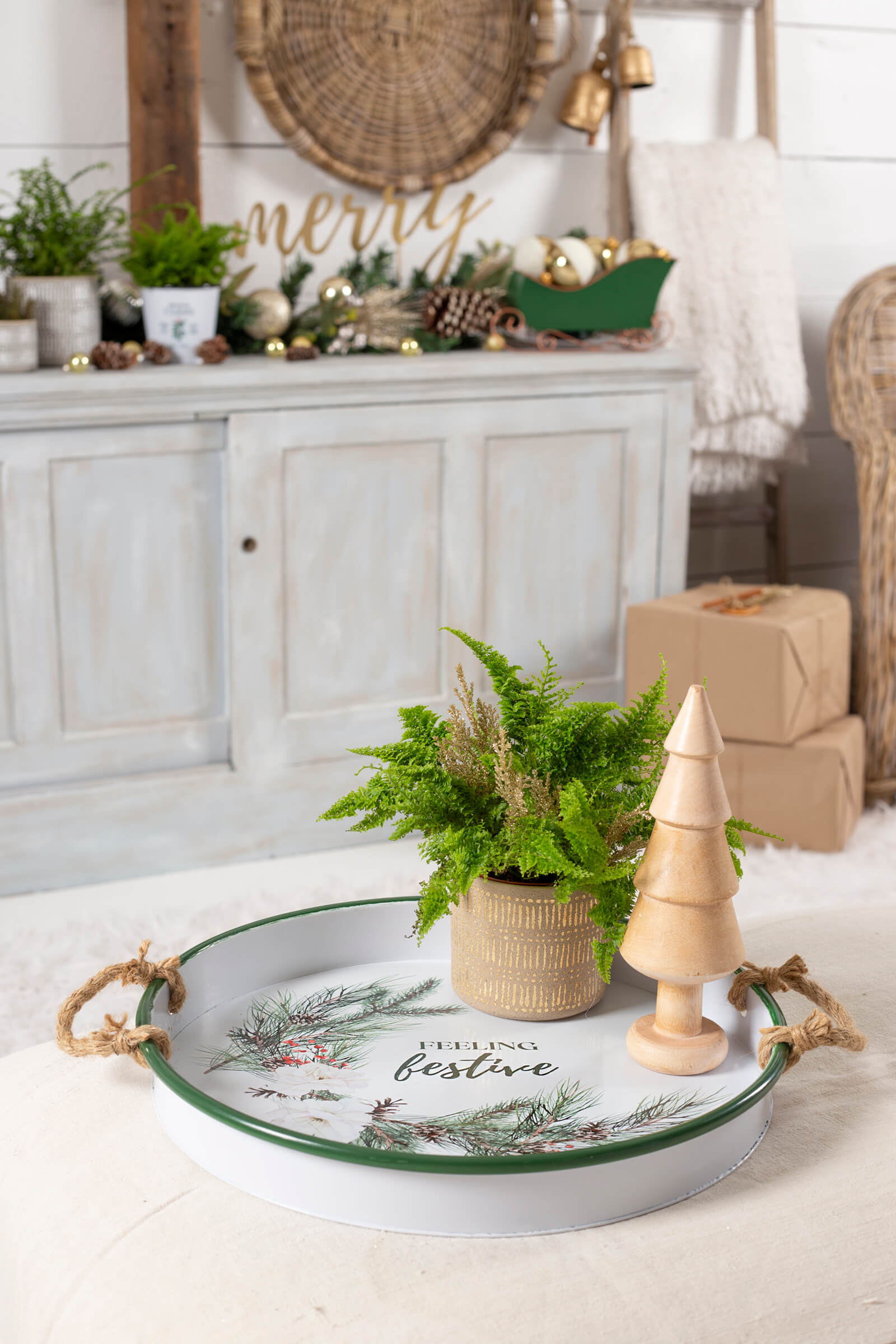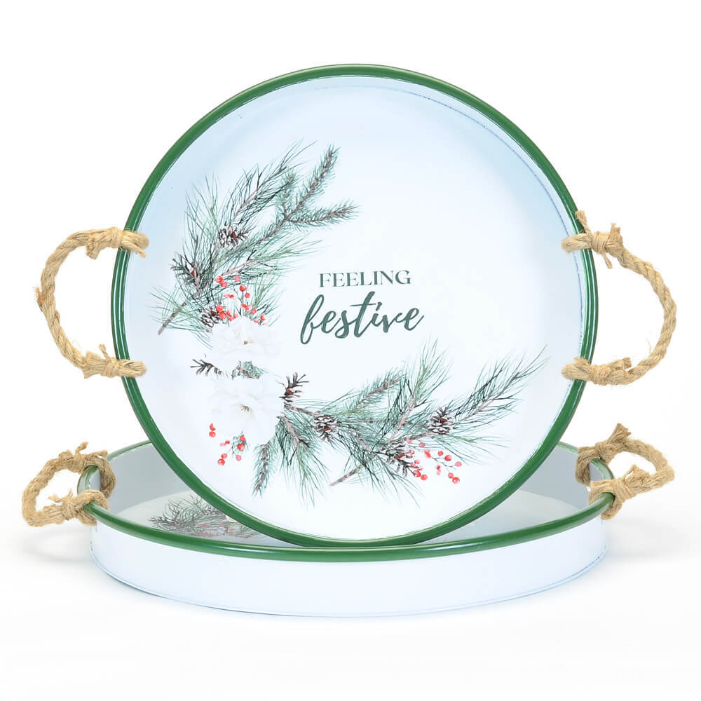 Elevate your entertaining with these stunning round metal trays, available in two versatile sizes. Designed with a festive aesthetic, they're ideal for presenting appetizers, desserts, or beverages with understated elegance. The durable metal construction ensures lasting beauty, while the sophisticated finish complements any table setting. Perfect for holiday gatherings, dinner parties, or everyday occasions, these trays transform ordinary moments into memorable experiences.