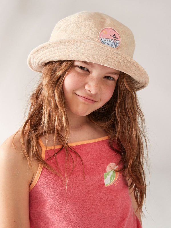 Made in soft blended cotton, this fuzzy bucket hat for girls' has a wide brim and an embroidered ROXY patch at the front.