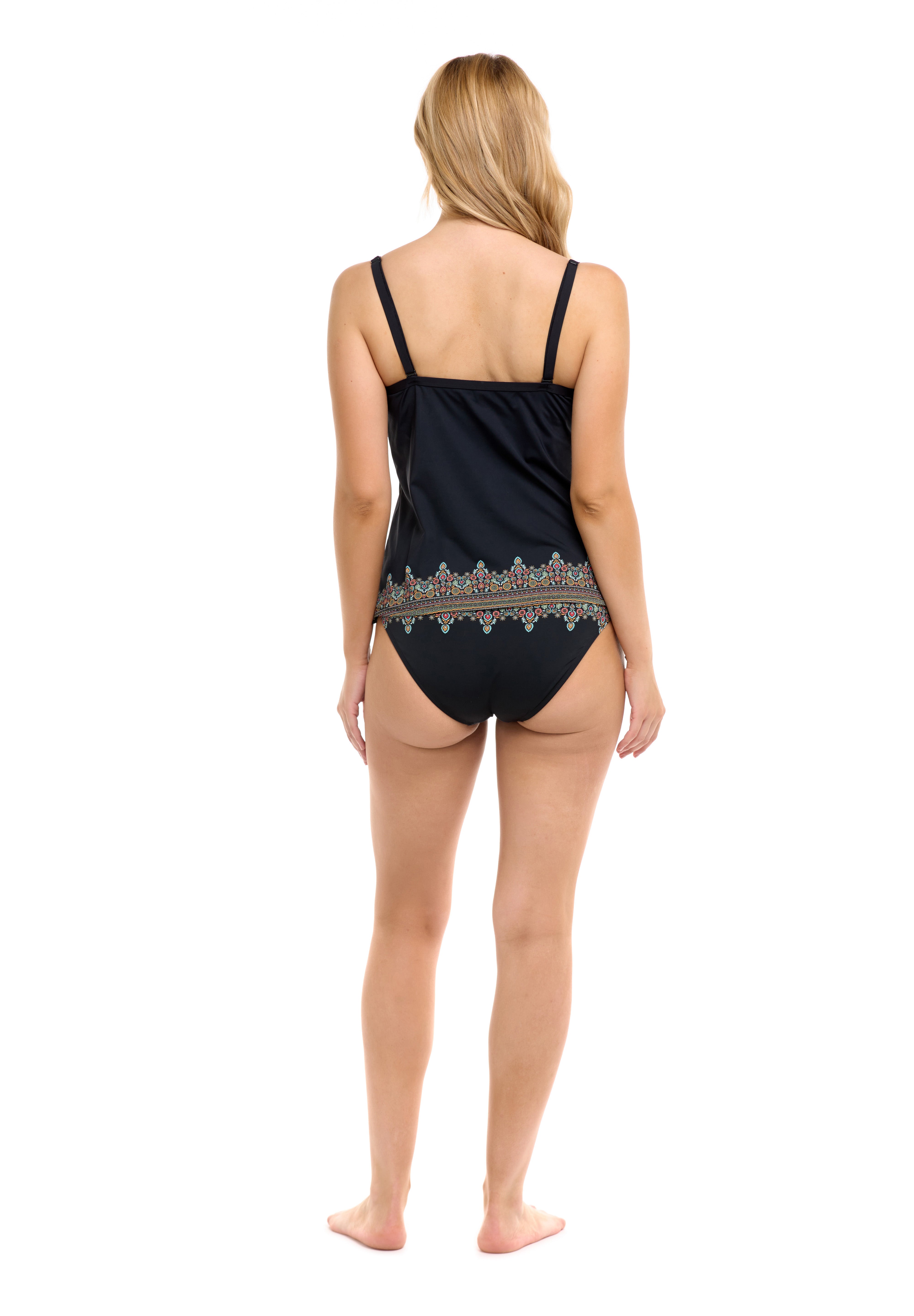 The Piper tankini is simplicity perfected, with a looser fit around the midsection that will have you feeling totally easy-breezy. Featuring a classic v-neck design, this high-coverage piece is also outfitted with removable soft cups, a contour shelf bra, and straps that can be adjusted two ways.