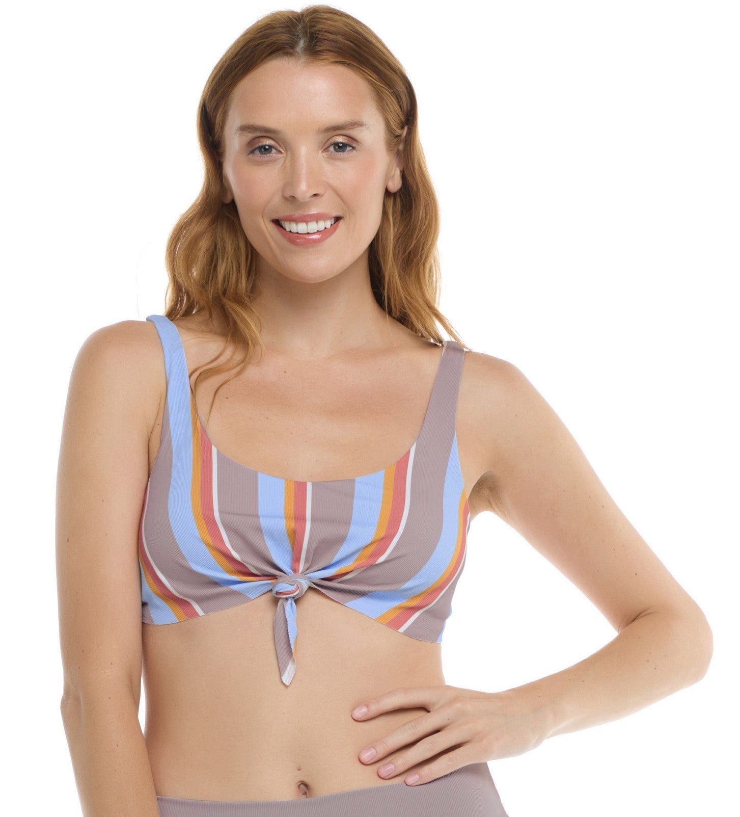 Fall head over heels for Mia, a wear-everywhere scoop-neck top with a playful front knot detail! Its removable soft cups and contour elastic were designed with practical, carefree comfort in mind, alongside luxe micro ribbed fabric.