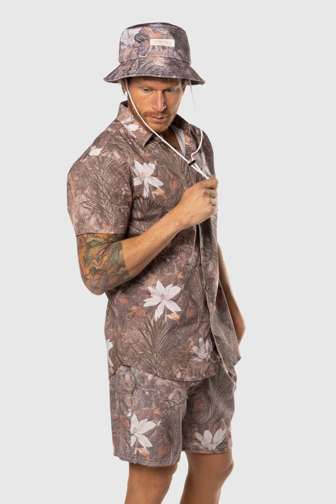 A floral with a twist—our Real Floral Bucket Hat takes the sweet and turns it bold. With a fun camo-meets-botanical print, this standout accessory brings fresh energy to any summer look. Whether you’re pairing it with swimwear, streetwear, or the full ‘summer tuxedo’ set (available at The Cottage), this hat delivers carefree style with serious personality.