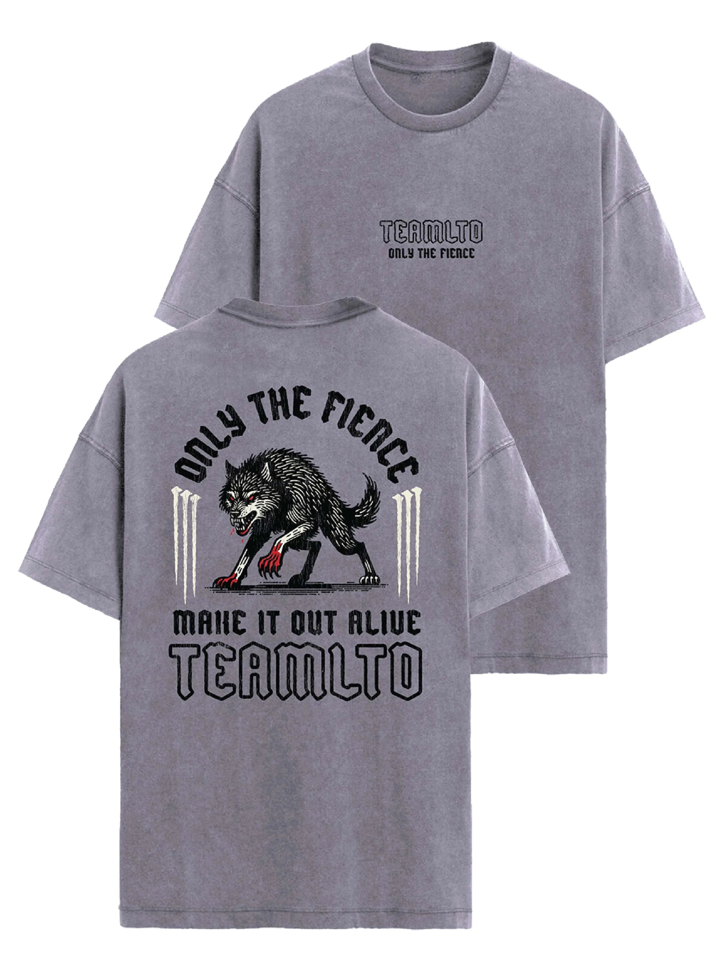Unleash bold energy with the TEAMLTD Only the Fierce Tee — a heavyweight graphic tee designed for those who don’t back down. Featuring a faded vintage wash for a lived-in look and feel, this shirt showcases a fierce wolf graphic on the back with claw mark accents and the bold message: “Only the Fierce Make It Out Alive.” The front sports a clean chest logo for a balanced style statement. Cut in a relaxed, oversized fit, it’s perfect for weekend adventures, bonfires, or making a statement around town.