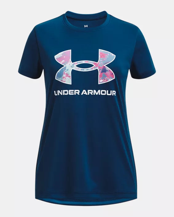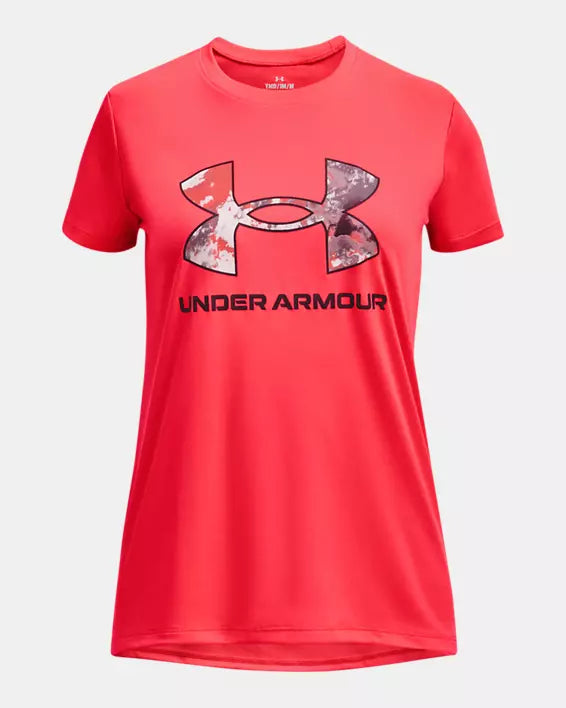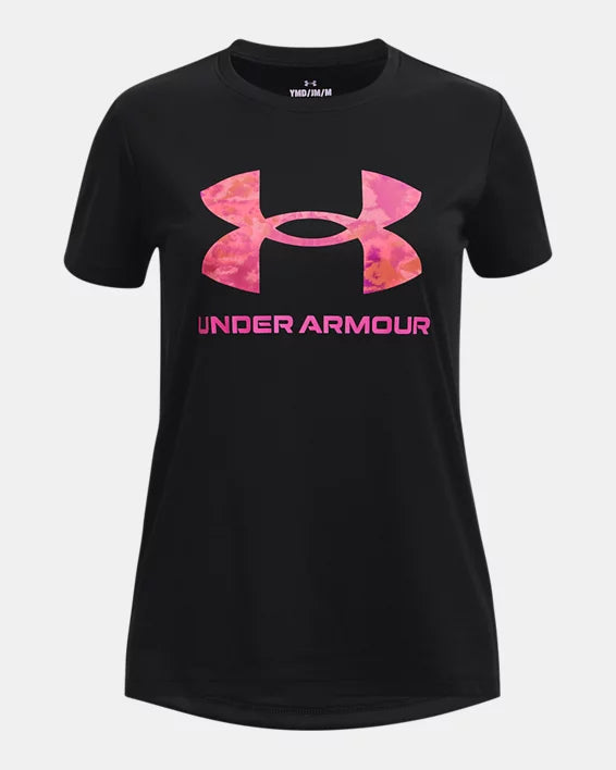 UNDER ARMOUR Girls Print Fill Big Logo Short Sleeve