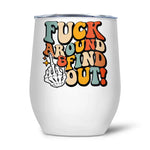 12oz tumbler The insulated stemless wine cup with lid is a stylish and trendy portable drinking cup for your favourite drink while on the go. The plastic lid helps to keep your drink in place, and the thermal, insulated stainless-steel exterior keeps your beverage at the right temperature.
